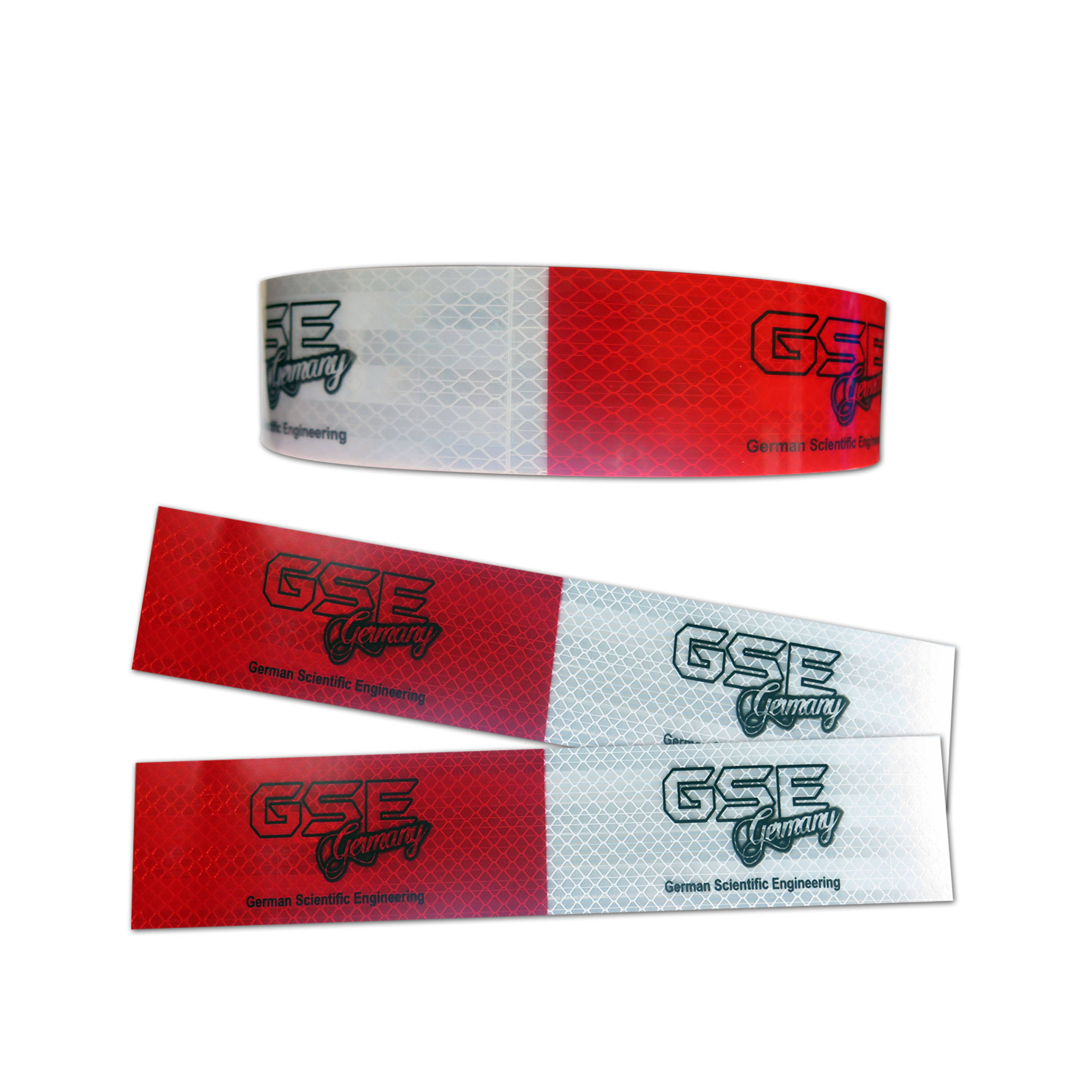 SELF ADHESIVE REFLECTIVE WARNING TAPE 2" X 45M PET RED / WHITE GSE GERMANY
